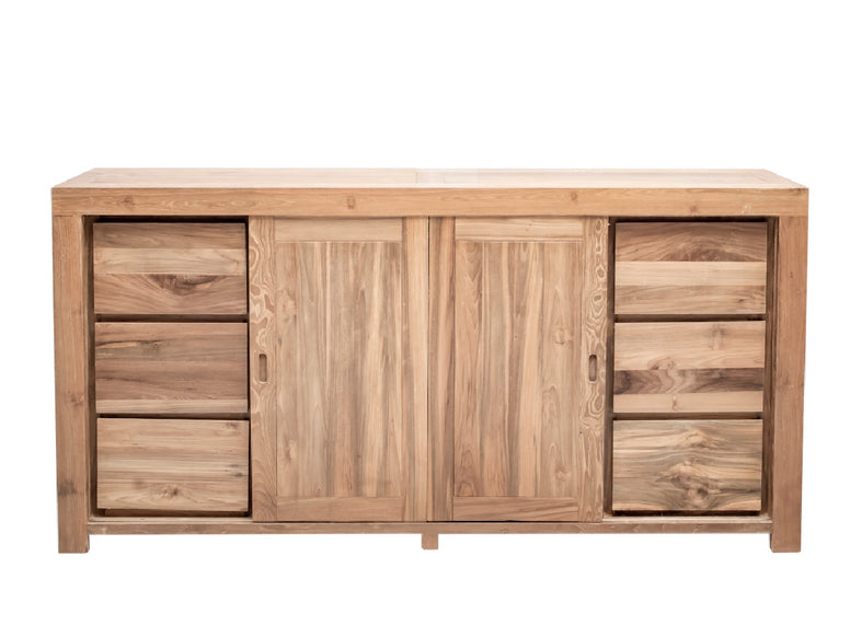 Momentum models, but also your projects can be made to measure by our craftsmen carpenters. Our solid recycled old teak furniture is handmade by our craftsmen located in the centre of the island of Java, Indonesia. Recycled teak wood comes from old furniture, doors, frames, which are given a second life. The different shades and grain of this wood with unique properties are exceptional, due to their colour variations, and the handmade work of Indonesian manufacturers.